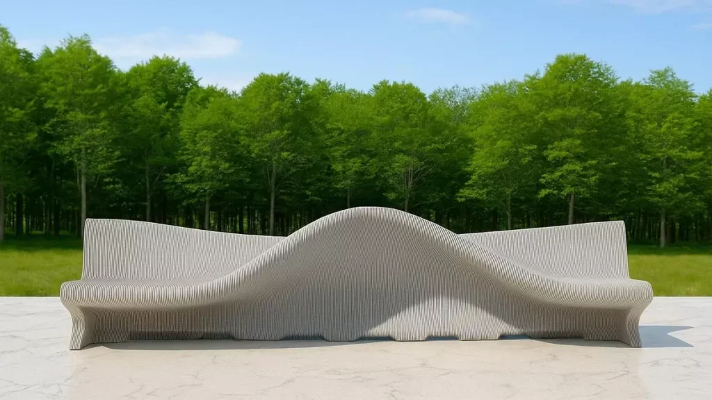 La pieza es obra de Zevin Song, estudiante del Instituto de Arquitectura Avanzada de Cataluña, ganador del I Concurso de Diseño FormART3D . El certamen, impulsado por la empresa Benito Urban, recibió 76 propuestas y buscaba captar el espíritu de Gaudí al tiempo que exploraba las posibilidades de la fabricación aditiva aplicada al mobiliario urbano.