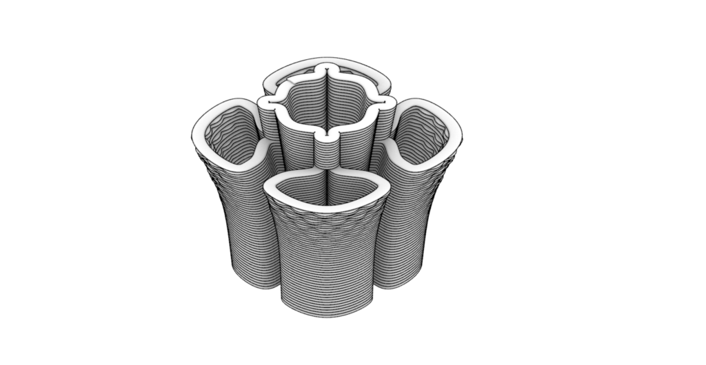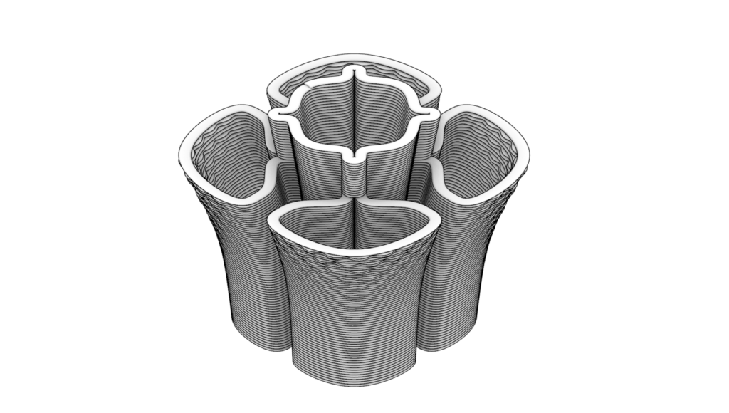 A nivel material, la textura y el sistema constructivo propios de la impresión 3D hacen visible el proceso de fabricación, aportando una identidad contemporánea que dialoga con lo existente sin mimetizarse. Esta condición refuerza la lectura del conjunto como una intervención actual, capaz de integrarse en un entorno consolidado desde una lógica clara y honesta.